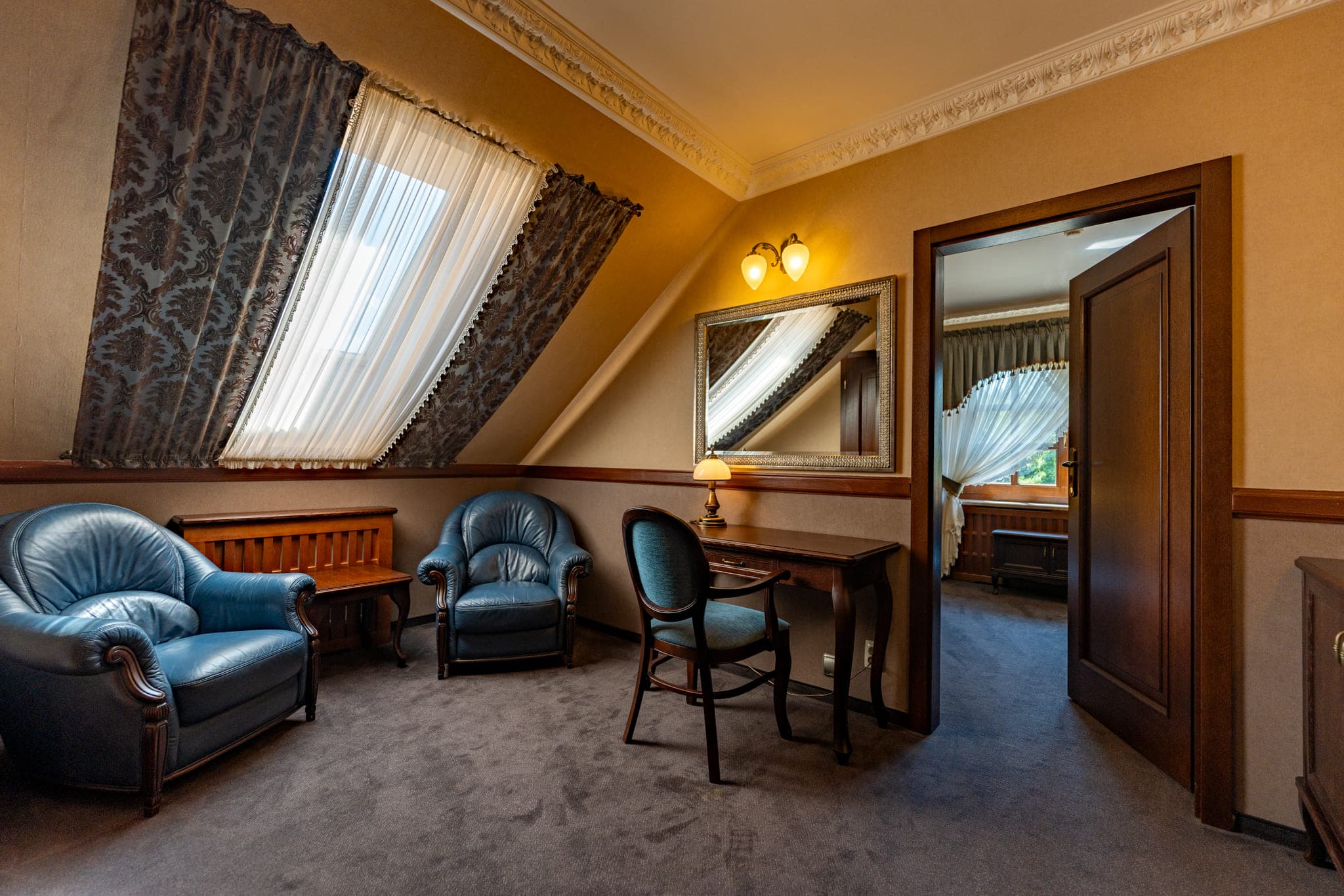 Nasze pokoje łączą wygodę z klimatem posiadłości Grabowczyzna. Oferujemy przestronne wnętrza, przytulny wystrój i widok na otaczającą naturę. Każdy pokój został wyposażony w komfortowe łóżka, łazienkę oraz udogodnienia, które sprawią, że Twój pobyt będzie w pełni relaksujący.